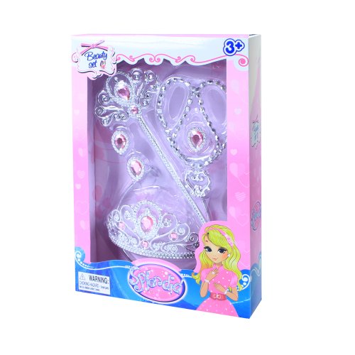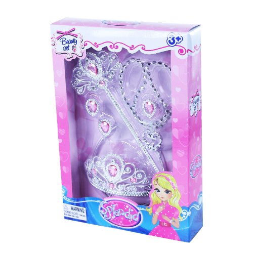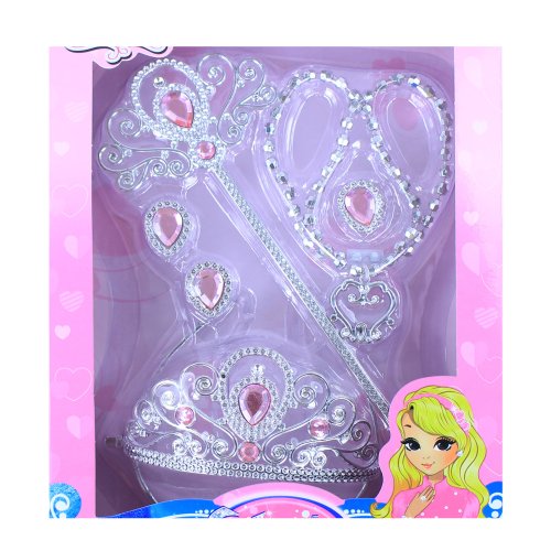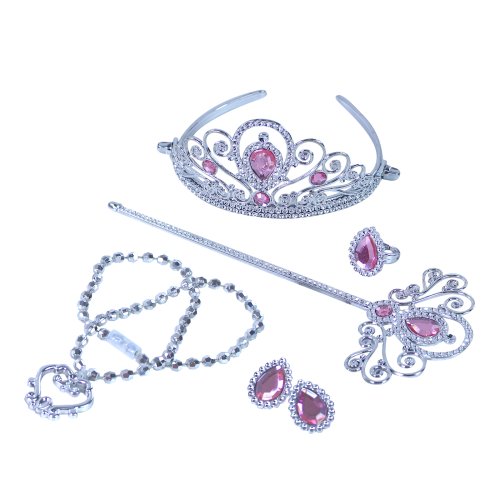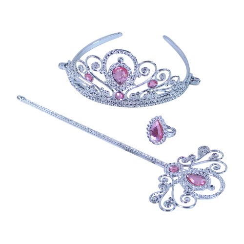 Krásná korunka s náušnicemi, náhrdelníkem, prstýnkem a hůlkou. Doplňky jsou zdobeny růžovými prvky. Perfektní sada ke kostýmu! Doporučeno pro děvčata od 3 let.