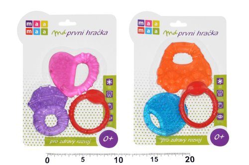 Kousátka poskytují úlevu při prořezávání zoubků, mírní bolesti dásní, pomáhají zdárnému vývoji dítěte. Jsou vyrobena z nezávadného měkkého materiálu. Hračky pro miminka jsou lehké a navíc fungují jako aktivní hračky - stimulují dítě vizuálně i prostřednictvím hmatu. Sada obsahuje dvě kousátka a jeden spojovací kroužek, na který lze kousátka navléknout.