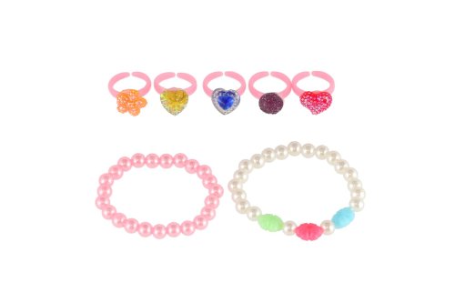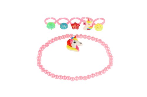 Nádherné šperky v podobě náramku a prstýnků pro všechny malé parádnice. Celý set je také vhodným doplňkem ke karnevalovému kostýmu. Rozměry balení 12 x 17 x 2 cm. Vhodné pro děti od 3 let.