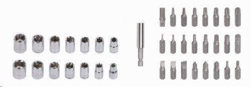• 23x šroubovací bity 1/4”: SL5, SL6, SL7, PH1, PH2, PH3, PZ1, PZ2, T10, T15, T20, T25, T27, T30, T40, H1.5, H2, H2.5, H3, H4, H5, H5.5, H6