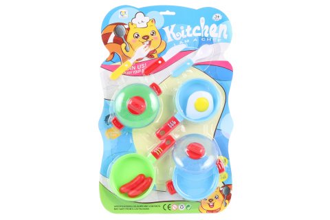 Plastová sada nádobí obsahuje 2 hrnce s pokličkou, 2 pánve, příbor a další doplňky. Celkem 11 ks. Rozměr balení cca 28 x 43 x 6 cm. Věk 3+
