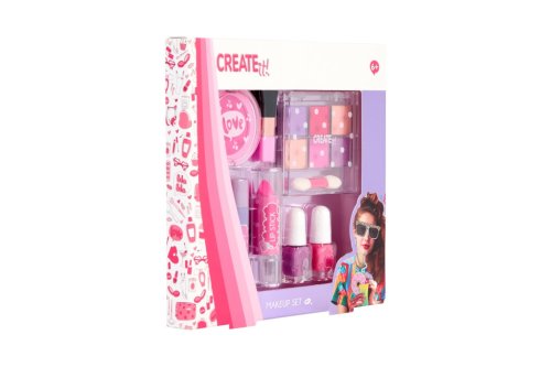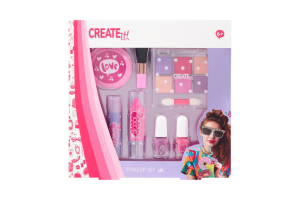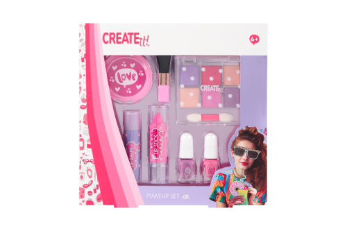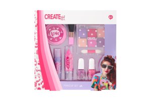 Sada líčení Creat it Pink Turquoise – obsahuje 2 laky na nehty, křídu na vlasy, velký štetec, balzám na rty, rtěnku, malý oboustranný štěteček, sada 6 třpytívých stínů na oči.