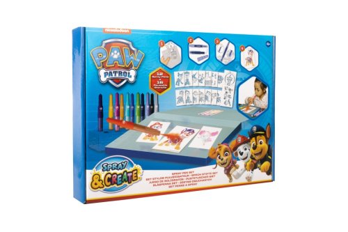 Sada malování se spray fixami Tlapková patrola – sada obsahuje praktický papírový box, 12 spray fixů, 14 ks A5 šablon a 2 ks A4 šablony.