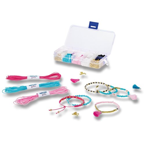 Náramek si můžete vyrobit dvěma různými technikami - tkaním a navlékáním. Tkaní je snadné díky přiloženému manuálu a jednoduché technice. Navlékání je ještě snadnější pouze, za pomoci barevných nití, korálků a střapců. Kombinací nití, korálků a střapců vytvoříte 16 trendy náramků., Sada obsahuje:, * plastový úložný box na korálky, * 4 barevné střapce, * 3 barevné neelastické nitě (3 x 450 cm), * 1 bílou elastickou niť (1 x 300 cm), * 4 mm barevné korálky zlaté a stříbrné barvy (2 x 25 ks), * 3 mm barevné perly (5 x 10 g), * papírový box s přihrádkami pro hotové náramky, Maped Creativ je kolekce kreativních sad francouzské značky Maped, tradičního výrobce kvalitních školních a kancelářských potřeb. Kolekce Maped Creativ v několika řadách nabízí, kreativní vyžití pro děti od 1 roku - edice EARLY AGE, až do věku 6+ - edice BOARD ACTIVITIES. Edice MINIBOX je vhodným dárkem při každé návštěvě rodin s dětmi. Edice COLOR PLAY pro, děti od 4 let zas posouvá hranice kreativního tvoření k dalšímu hraní.