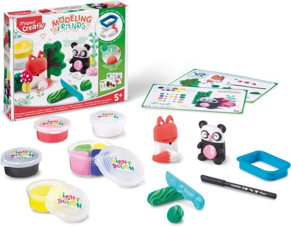 Kreativní sada na modelování pro děti od 5 let. Ideální pomocník pro vymodelování a ozdobení roztomilých figurek pandy a lišáka pomocí tvrdnoucí hmoty a přiloženého nářadíčka., Vymodelovaná figurka po 4 hodinách zatvrdne v pevnou dekoraci., Sada obsahuje:, * tvarovací formu, * modelovací hmotu ve 4 základních barvách (4 x 18 g), * modelovací hmotu ve 4 doplňkových barvách (1 x 31 g), * černý fix, * plastový nožík, * 2 barevné předlohy, Maped Creativ je kolekce kreativních sad francouzské značky Maped, tradičního výrobce kvalitních školních a kancelářských potřeb. Kolekce Maped Creativ v několika řadách nabízí, kreativní vyžití pro děti od 1 roku - edice EARLY AGE, až do věku 6+ - edice BOARD ACTIVITIES. Edice MINIBOX je vhodným dárkem při každé návštěvě rodin s dětmi. Edice COLOR PLAY pro, děti od 4 let zas posouvá hranice kreativního tvoření k dalšímu hraní.