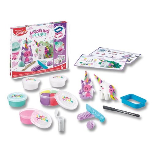 Kreativní sada na modelování pro děti od 5 let. Ideální pomocník pro vymodelování a ozdobení roztomilých figurek jednorožce a kočičky pomocí tvrdnoucí hmoty a přiloženého, nářadíčka. Vymodelovaná figurka po 4 hodinách zatvrdne v pevnou dekoraci., Sada obsahuje:, * tvarovací formu, * modelovací hmotu ve 4 základních barvách (4 x 18 g), * modelovací hmotu ve 4 doplňkových barvách (1 x 31 g), * černý fix, * plastový nožík, * 2 barevné předlohy, * tubu zlatých flitrů na zdobení, Maped Creativ je kolekce kreativních sad francouzské značky Maped, tradičního výrobce kvalitních školních a kancelářských potřeb. Kolekce Maped Creativ v několika řadách nabízí, kreativní vyžití pro děti od 1 roku - edice EARLY AGE, až do věku 6+ - edice BOARD ACTIVITIES. Edice MINIBOX je vhodným dárkem při každé návštěvě rodin s dětmi. Edice COLOR PLAY pro, děti od 4 let zas posouvá hranice kreativního tvoření k dalšímu hraní.