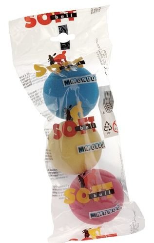 Sada obsahující tři míčky z měkké pěny na soft tenis a jiné hry. Vzhledem k použitému materiálu vhodné i pro hraní v interiéru. Baleno v plastovém sáčku. Doporučeno pro děti od 3 let. Vyrábí společnost Mondo v Itálii.