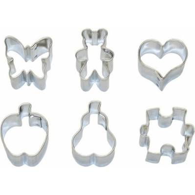 Sada 6ti mini vykrajovátek (motýlek, medvídek, srdce, puzzle, hruška, jablko) z pocínovaného plechu.