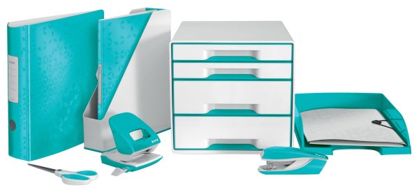Sada mini sešívačky a děr. Leitz WOW - led. modrá
