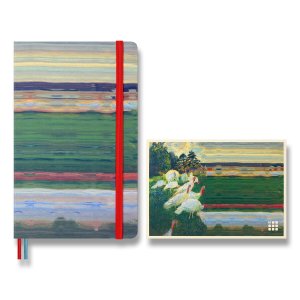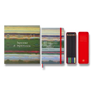 Sada Moleskine Impressionism obsahuje zápisník velikosti L a 6 akvarelových pastelek Moleskine z kolekce Impressionism.