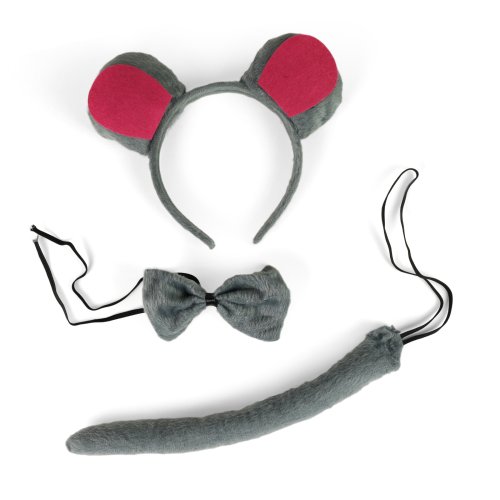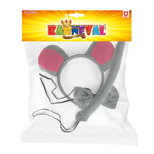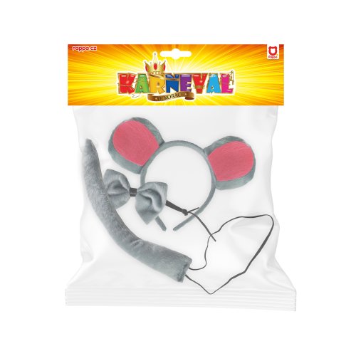 Karnevalové plyšové doplňky v myším stylu! Exkluzivní sada obsahuje ocas na gumičku, motýlka a čelenku s ušima.