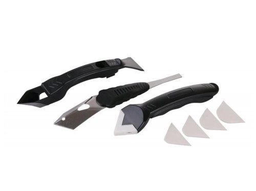 Sada pro odstranění starých a plesnivých pružných spojů a aplikaci nového silikonu. Sada obsahuje spárovací nůž pro rychlé a snadné odstranění starých silikonových nebo akrylových spojů a spárovací stěrku pro rychlé a precizní uhlazení nově vytvořených spár.