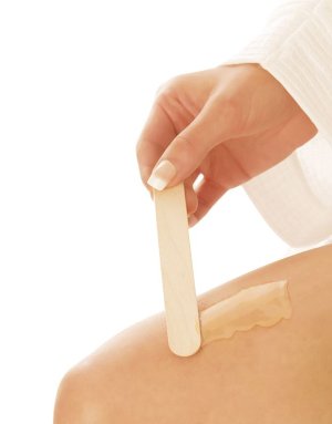 Měkký vosk aplikujte pomocí špachtle velmi tenkou vrstvu vosku stejným směrem s růstem chloupků.