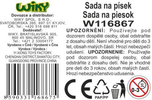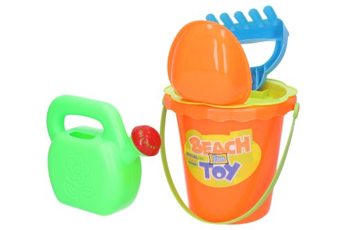 Sada na písek 15 cm 5 dílů. 2 varianty - žlutá, oranžová. Obsahuje kyblík, sítko, konvičku, hrábě a lopatku.