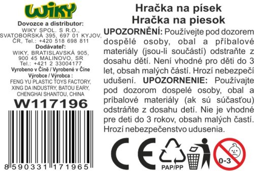 kyblík s obrázkem zvířátka (8 cm) 2 lopatičky 2 formičky Doporučený věk: od 3 let