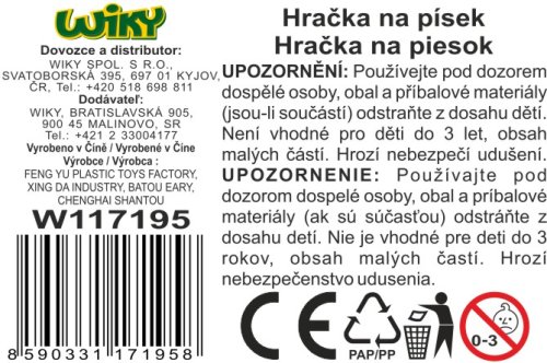kyblík s obrázkem zvířátka (15 cm) lopatka hrabičky konvička 2 formičky Doporučený věk: od 3 let