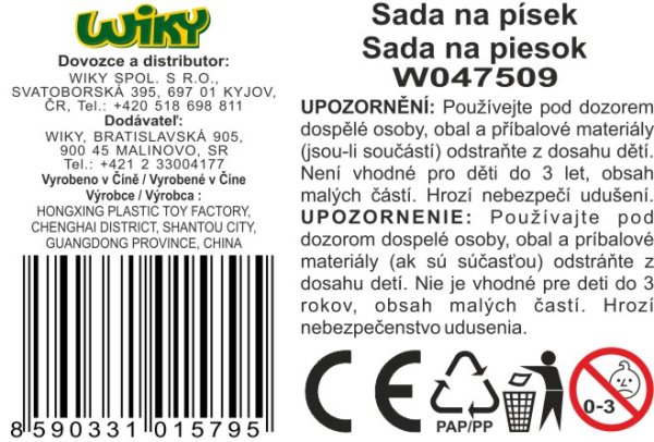 Sada na písek 7 ks. Součástí kbelík, 2 lopatky, sítko, hrabičky, 2 formičky.