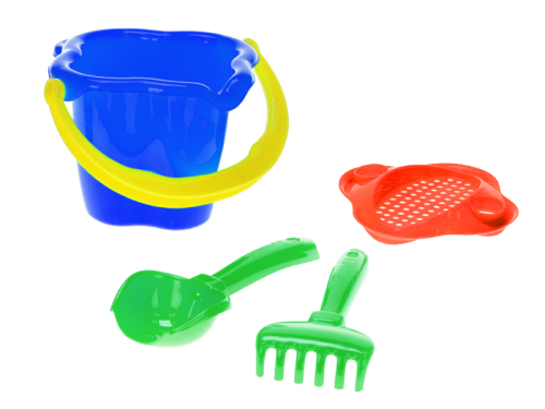 Na žádném pískovišti nesmí chybět základní doplňky k tvorbě zajímavých staveb s písku. Tato sada na písek obsahuje kyblíček, sítko, lopatku a hrabičky. Je vyrobena z kvalitního a pevného materiálu. Je vhodná jak pro kluky tak i holky.