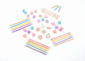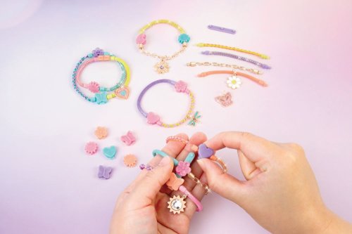 Vytvořte propojené vzhledy s touto kompletní sadou na výrobu náramků! Kombinujte řetízek a barevné šňůrové části tak, že je spojíte ozdobnými články. Ozdobte 6 roztomilými přívěsky. Mladí designéři mohou vytvářet jednoduché nebo vrstvené náramky, styly zábalu nebo dokonce náhrdelníky, poté smíchat a sladit další, aby změnili vzhled. Přidejte kouzla pro další přizpůsobení každého stylu a vyměňujte kousky, aby doplnily jakýkoli outfit dne. Díky jednoduchým pokynům, které vedou začínající návrháře na cestě, je tato sada ideální pro módní doplnění, kteří chtějí vytvořit stylové doplňky. Je to skvělý tip na dárek k svátku, narozeninám nebo jen tak. Ideální pro děti ve věku 6+.