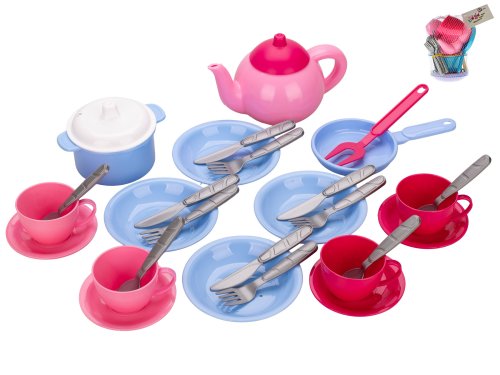 Nevíte si rady s dětmi v kuchyni? Pořiďte jim kuchařské náčiní, ať mohou vařit s vámi. Sada nádobí obsahuje konvici, hrnec, pánev, talíře, příbory, šálky a podšálky. Vhodné pro děti od 3 let.