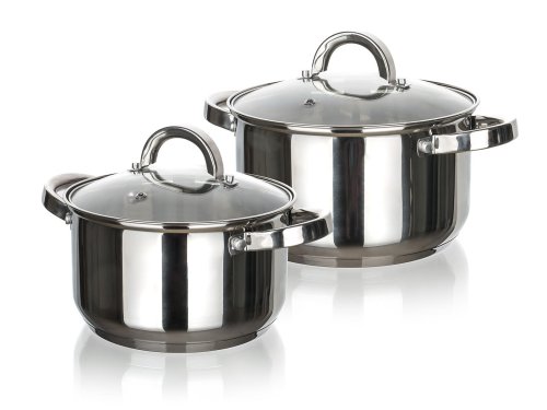 materiál: nerez tloušťka stěny: 0,4 mm tloušťka dna: 2,8 mm materiál držadel: nerez materiál poklice: sklo