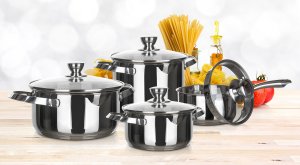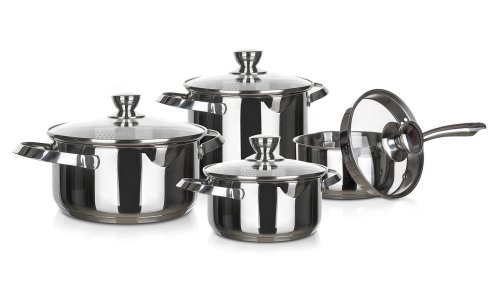 Hrnce s praktickou výlevkou a skleněnou poklicí s otvory pro snadné slévání. Vnější i vnitřní povrchová úprava v lesku, uvnitř hrnců je měrka. Nádobí lze používat na všechny typy varných desek včetně indukce. Nerezová sada hrnců EMBASSY - to je vynikající poměr cena / kvalita, široká možnost použití, moderní design.