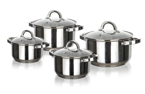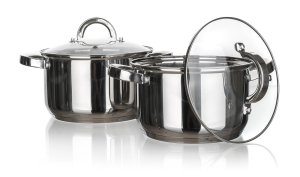 Sada nerezového nádobí SWING. Nádobí lze používat na všechny typy sporáků. Poklice jsou vyrobeny z odolného skla a mají otvor na páru pro dokonalou kontrolu nad vařením. Povrchová uprava nerezi lesk (uvnitř i vně). Nádobí se snadno udržuje, lze mýt v myčce. Držadla jsou k hrncům našroubovaná.