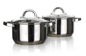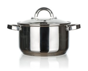 materiál: nerez tloušťka stěny: 0,4 mm tloušťka dna: 2,8 mm materiál držadel: nerez materiál poklice: sklo