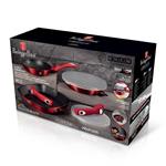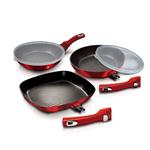 Univerzální sada pánví Berlingerhaus Burgundy Metallic Line s odnímatelnými rukojeťmi je ideální pro každodenní vaření, pečení i servírování. Obsahuje 3 pánve (včetně grilovací) a 2 víčka pro skladování. Díky odnímatelným rukojetím lze některé pánve vložit do trouby až do 220 °C, což zvyšuje jejich univerzálnost a šetří místo při skladování.
