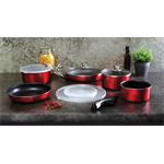 Jedinečná sada nádobí s odnímatelnou rukojetí z červené kolekce Burgundy Metallic Line. Doménou této sady je praktická Click rukojeť, díky které můžete celou sadu použít v troubě i na sporáku. Všechny nádoby jsou stohovatelné do sebe a tak vám celá sada nádobí v kuchyni zaberou pouze jednu poličku. Odnímatelná rukojeť je kompatibilní se všemi kusy nádobí. Je ergonomicky tvarovaná a pohodlně se drží. Její odejmutí a následné připnutí jedním pohybem trvá sotva vteřinu. Klidně můžete na sporáku vařit ve všech nádobách a libovolně mezi nimi rukojeť přepínat. Součástí sady jsou tři skleněné poklice a také tři skladovací víka, která nádoby spolehlivě uzavřou, když v nich budou například hotové pokrmy.