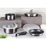 Trávíte v kuchyni mnoho času a je to na vašich hrncích a pánvičkách znát? Pořiďte si jedinečnou sadu nádobí z kolekce Carbon PRO Line. Odnímatelná "click" rukojeť umožňuje použít celou sadu v troubě, aniž by došlo k jejímu zničení. Jednotlivé pánve a kastroly zapadají do sebe a na všechny pasují pokličky, které k sestavě patří. Ušetříte spoustu úložného místa v kuchyni. Turbo indukční dno u nádobí zvýší efektivitu přípravy a rychlost vaření.