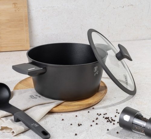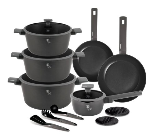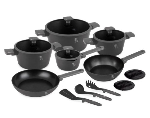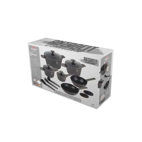 Berlingerhaus Antracit Collection je moderní 15dílná sada nádobí s titanovým povrchem, která zaujme minimalistickým stylem, odolným materiálem a praktickými funkcemi. Díky třívrstvému nepřilnavému povrchu TitanPro připravíte pokrmy zdravě, s minimem tuku a bez připalování.