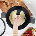 Tato 15dílná sada nádobí poskytuje vše potřebné pro přípravu polévek, omáček, masa, zeleniny i příloh. Díky povrchu TitanPro se jídlo nepřipaluje a údržba je velice snadná. Sklěněné poklice se silikonovým okrajem dobře těsní a plynule regulují páru. Minimalistický matný design v barvě antracitu dodá vaší kuchyni moderní vzhled a zároveň je praktický pro každodenní vaření i servírování.
