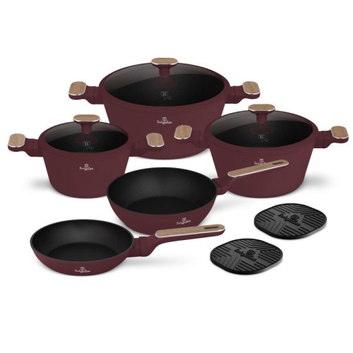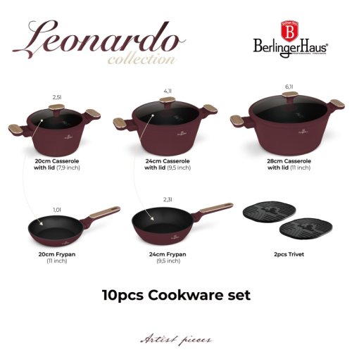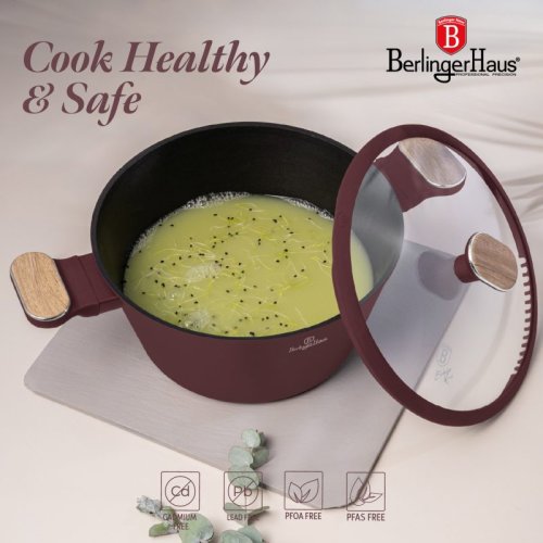 Vylaďte svou kuchyni do posledního detailu se sadou nádobí Berlingerhaus Leonardo Nordic Collection. Elegantní matná bordó a jemné dřevěné detaily jsou tím pravým doplňkem do každé stylové kuchyně. 10 kusů nádobí pokryje vaření od snídaně pro dva až po nedělní rodinný oběd.
