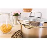 Obrovskou výhodou oproti běžně používaným hrncům jsou výparníky/cedníky, kterými jsme osadili všechny poklice v sadě. Už si nepopálíte ruce při slévání horké vody z brambor či těstovin. Pro rychlejší uvedení surovin k varu jen pootočíte poklicí a výparník/cedník se uzavře.