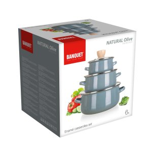 Sada nádobí NATURAL OLIVE, smalt, 6díl.