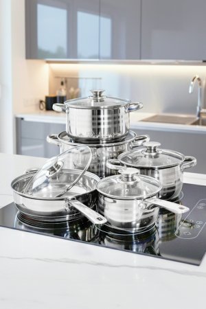 Tato víceúčelová nerezová sada nádobí umožňuje pohodlnou přípravu více jídel současně – dušení masa, vaření polévek, rýže, těstovin, omáček i smažení. Díky univerzálním rozměrům a praktickému složení získáte kompletní sadu hrnců na indukci, plynový i elektrický sporák.