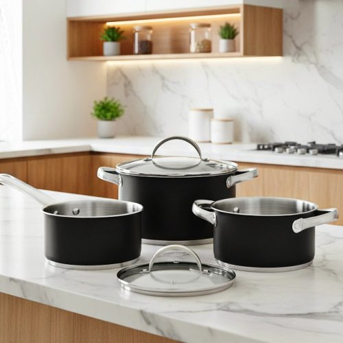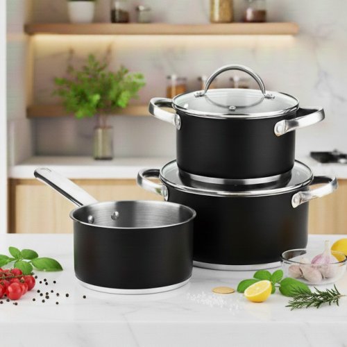 •Nádobí skládající se ze 2 kastrolů, 2 poklic a rendlíku: kastrol 16 cm s objemem 1,3L + kastrol 20 cm s objemem 2,8L a kastrol 24 cm s objemem 4,5L.•Vyrobeno ze silné nerezová ocel pro rychlou distribuci …