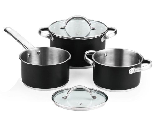 •Nádobí skládající se ze 2 kastrolů, 2 poklic a rendlíku: kastrol 16 cm s objemem 1,3L + kastrol 20 cm s objemem 2,8L a kastrol 24 cm s objemem 4,5L.•Vyrobeno ze silné nerezová ocel pro rychlou distribuci tepla. Pevný a odolný materiál.•Toto nádobí obsahuje 2 poklice z čirého skla pro každý kastrol a má otvor pro výstup páry. •Vhodné pro všechny typy sporáků: indukční, halogenové, elektrické, plynové a sklokeramické.•Doporučujeme je mýt ručně.Velmi kompletní a moderní nádobí. Skládá se z 16 cm kastrolu, 20 cm kastrolu a 24 cm kastrolu. Rychlá distribuce tepla díky nerezové oceli vám umožní získat to nejlepší nádobí a ušetřit čas. Součástí jsou 2 průhledné skleněné poklice, pomocí kterých můžete bezpečně ovládat okamžité vaření. Toto nádherné nádobí si můžete vychutnat v každém z různých typů sporáků, které existují na trhu: indukční, halogenové, elektrické, plynové a sklokeramické. Doporučuje se ruční mytí.