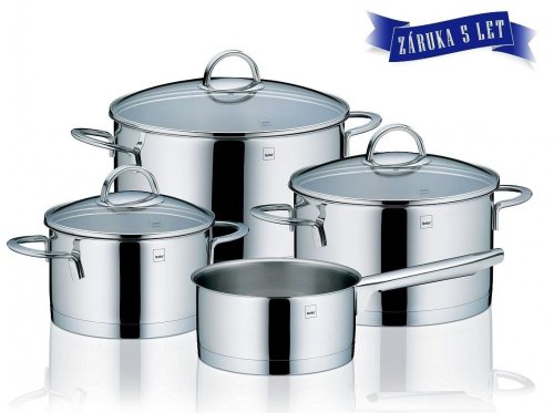 Hledáte vhodnou sadu nádobí do vaší kuchyně? Sadou získáte všechny potřebné nádoby na vaření, ať už budete vařit pro sebe nebo pro více osob. Velkou výhodou je, že můžete objednat najednou více nádobí od ověřeného výrobce KELA. Sadu nádobí sjednocuje jednotný design, navíc nerezová barva celé sady je univerzální a vyjímat se bude v každé kuchyni.