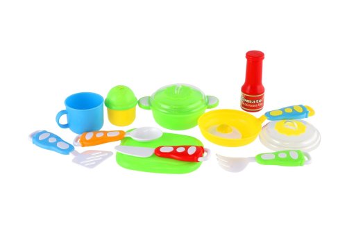 Se sadou barevného nádobí a doplňků budou moci malí kuchaři a kuchařky vařit co se jim zlíbí. Rozměr balení: 18,5 x 26 x 6 cm Vhodné pro děti od 3 let