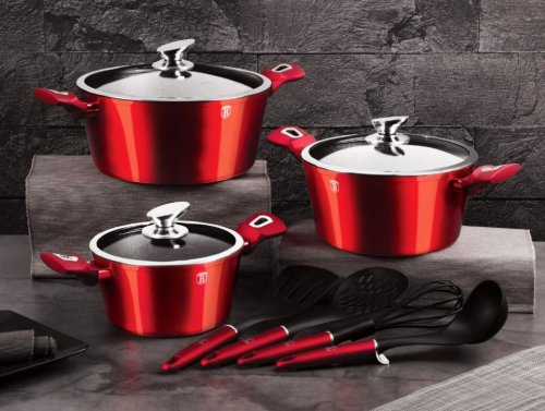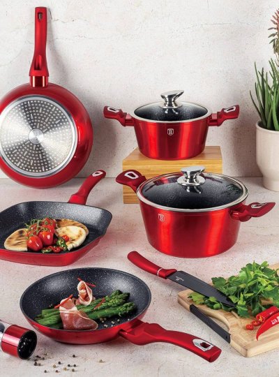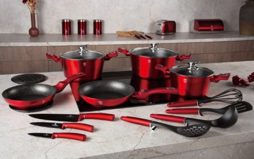 Hledáte vhodnou sadu nádobí do vaší kuchyně? Sadou získáte všechny potřebné nádoby na vaření, ať už budete vařit pro sebe nebo pro více osob. Velkou výhodou je, že můžete objednat najednou více nádobí od ověřeného výrobce BERLINGERHAUS. Sadu nádobí sjednocuje jednotný design, navíc červená barva celé sady je univerzální a vyjímat se bude v každé kuchyni.