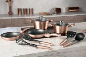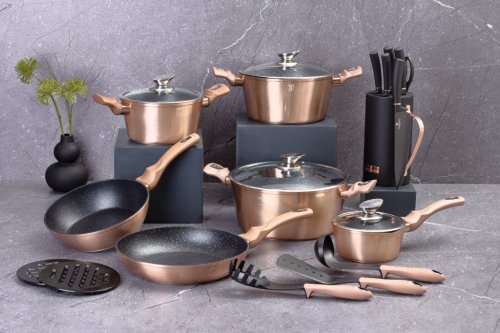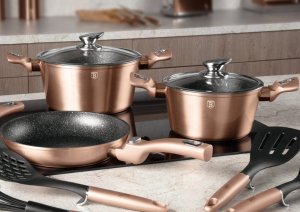 Hledáte vhodnou sadu nádobí do vaší kuchyně? Sadou získáte všechny potřebné nádoby na vaření, ať už budete vařit pro sebe nebo pro více osob. Velkou výhodou je, že můžete objednat najednou více nádobí od ověřeného výrobce BERLINGERHAUS. Sadu nádobí sjednocuje jednotný design, navíc zlatá barva celé sady je univerzální a vyjímat se bude v každé kuchyni.