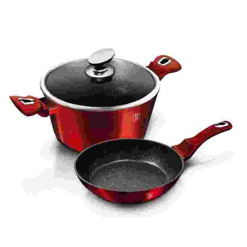 Sada nádobí s mramorovým povrchem 3 ks Burgundy Metallic Line BH-1291