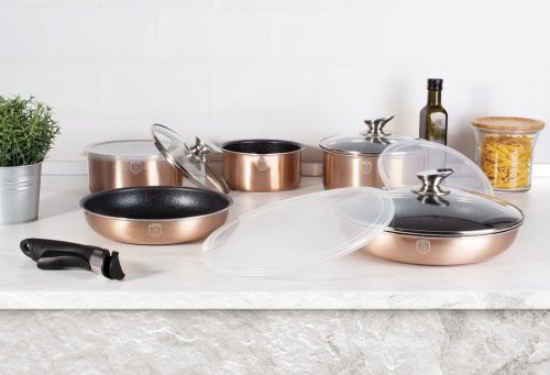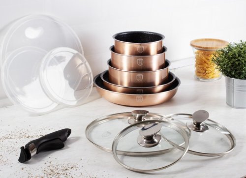 Hledáte vhodnou sadu nádobí do vaší kuchyně? Sadou získáte všechny potřebné nádoby na vaření, ať už budete vařit pro sebe nebo pro více osob. Velkou výhodou je, že můžete objednat najednou více nádobí od ověřeného výrobce BERLINGERHAUS. Sadu nádobí sjednocuje jednotný design, navíc zlatá barva celé sady je univerzální a vyjímat se bude v každé kuchyni.