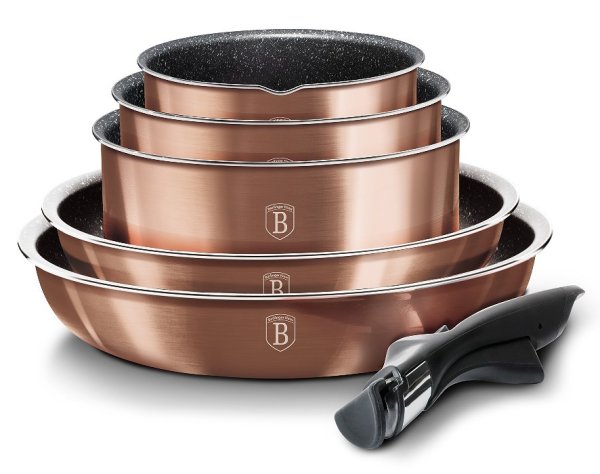 Jedinečná sada nádobí s odnímatelnou rukojetí z kolekce Rosegold Metallic Line.