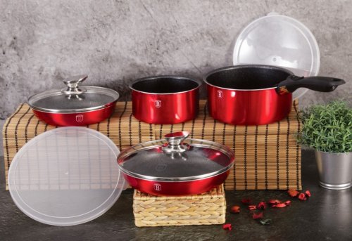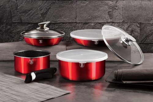 Hledáte vhodnou sadu nádobí do vaší kuchyně? Sadou získáte všechny potřebné nádoby na vaření, ať už budete vařit pro sebe nebo pro více osob. Velkou výhodou je, že můžete objednat najednou více nádobí od ověřeného výrobce BERLINGERHAUS. Sadu nádobí sjednocuje jednotný design, navíc červená barva celé sady je univerzální a vyjímat se bude v každé kuchyni.