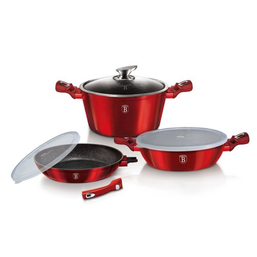 Sada nádobí s odnímatelnou rukojetí a mramorovým povrchem 6 ks Burgundy Metallic Line.
