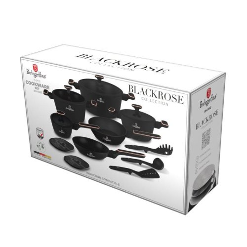 Sada nádobí 15 ks BERLINGERHAUS BH-8363 Black Rose Collection – Když se černá elegance spojí s růžově zlatým luxusem.