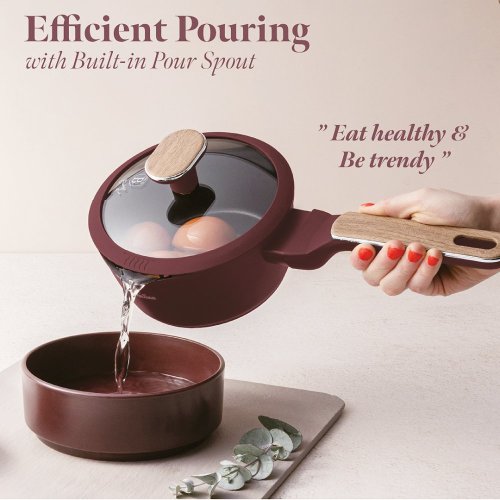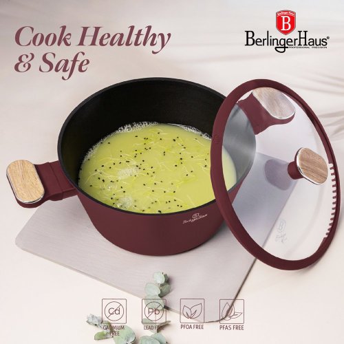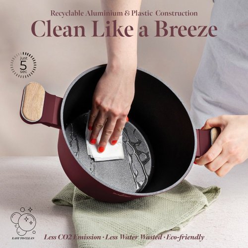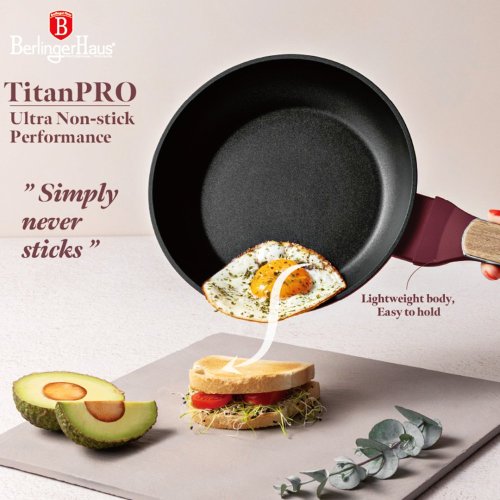 Vstupte do světa profesionálního vaření s touto exkluzivní sadou nádobí, která kombinuje lehkost kovaného hliníku s prémiovým nepřilnavým povrchem TitanPro. Každý kus je navržen tak, aby vám usnadnil přípravu pokrmů a zároveň přinesl do vaší kuchyně styl a funkčnost v minimalistickém designu v matné bordó a dřevěných detailech.
